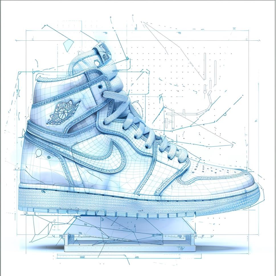 PROMPT: blue print design of a sneaker, digital sketch, 4k, detailed --v 6.0 --s 250