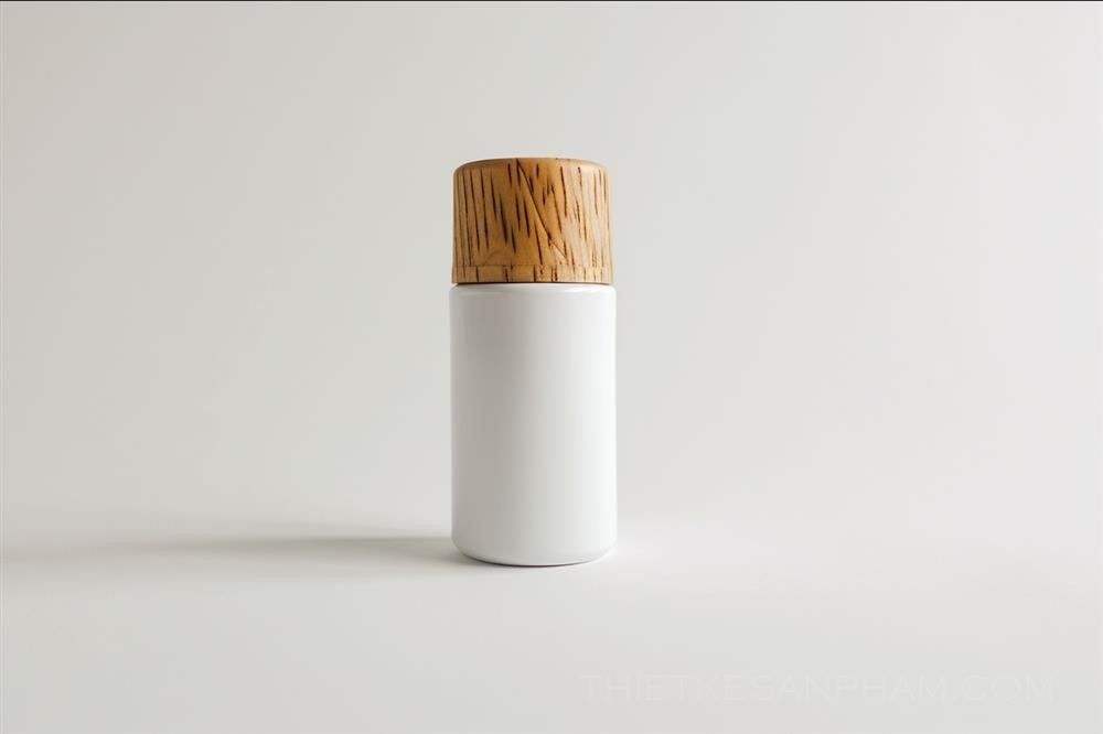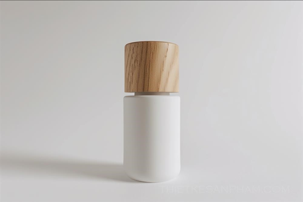 PROMPT: white background minimalistic mens skincare product wooden lid white bottle 8k --ar 3:2 --s 50 --v 6.0 --style raw