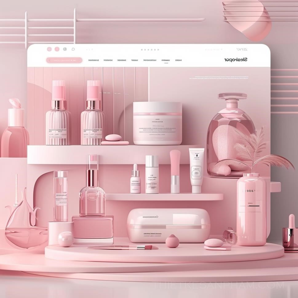 PROMPT: web design ui ux background landing page of beauty shop, 3d effect, futuristic style –ar 16:9 –no hands –q 2 –v 5 –s 750 --v 6.0
