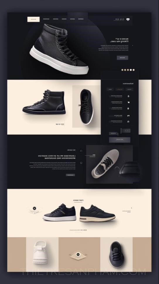 PROMPT: a website design for a shoe branding company with features section and simple and straightforward navigation with ample spacing. UI and UX --v 6.0 --ar 9:16