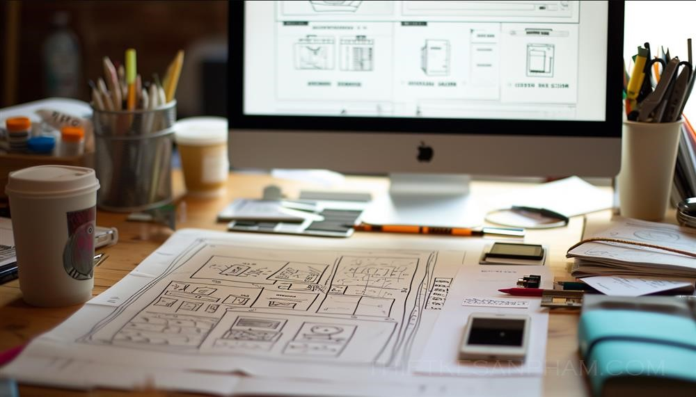 PROMPT: website prototype sketch design ui ux web design --ar 7:4 --v 6.0 Ý Nghĩa: Thiết kế bản phác thảo giao diện trang web và thiết kế web ui ux.