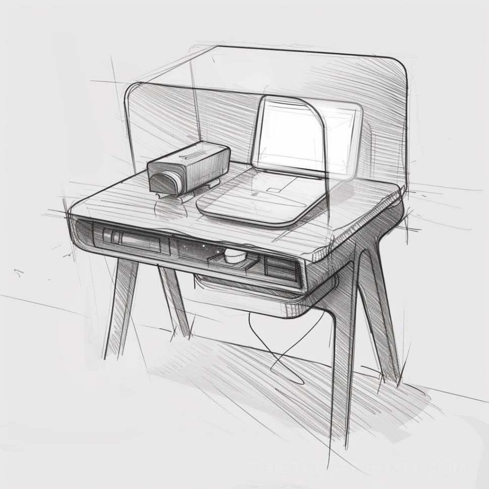 PROMPT: Indoor table product embedded in bedside table screen industrial design sketch --v 6.0 Ý Nghĩa: Bảng sản phẩm trong nhà được nhúng vào bàn đầu giường, bản vẽ thiết kế công nghiệp màn hình bàn đầu giường.