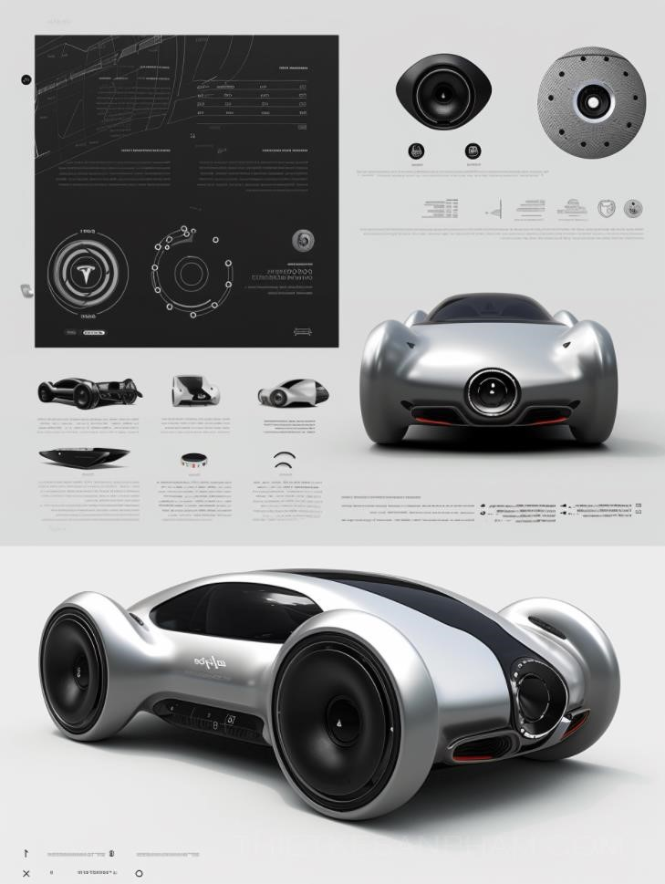 Complete product design rendering page layout, product life cycle, electric car gadget sketch, projection, modern minimalist, high-end texture, streamlined, silver grey + black + round operation panel, rich details --ar 3:4 --v 6.0