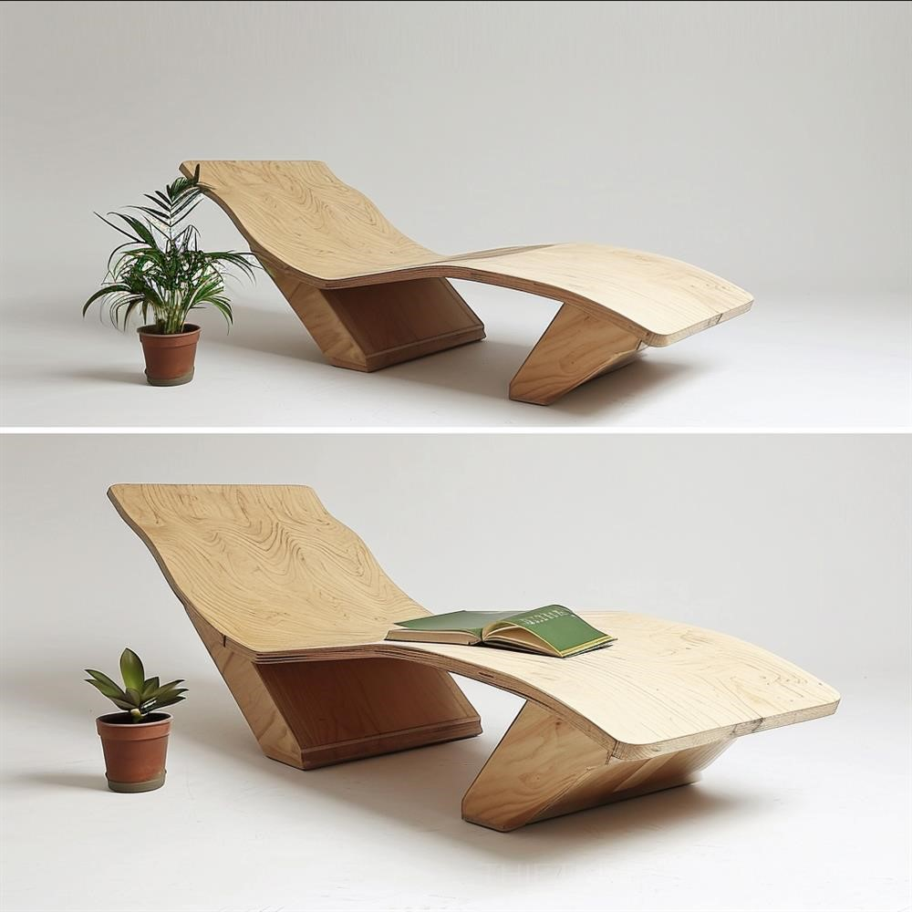 "Generate a visually captivating image of a multifunctional wooden furniture piece inspired by modern Japanese design. This furniture seamlessly transforms between two states: a lounge chair and a table. It is essential that no components or parts can be separated during the transformation process, and the entire structure maintains perfect symmetry when in the state of a table. The furniture should exude a sense of fluidity and balance in its design. Its dimensions when in table state are 90cm in width, 200cm in length, and 50cm in height. The wood used should showcase its natural texture and beauty. Please emphasize the modern Japanese style in the aesthetics, focusing on clean lines, minimalistic elegance, and attention to detail. The lighting and angles should highlight the symmetry, functionality, and overall aesthetics of the piece. This image should capture the essence of Japanese design philosophy while showcasing the furniture's ability to seamlessly transition between the lounge chair and table forms --v 6.0