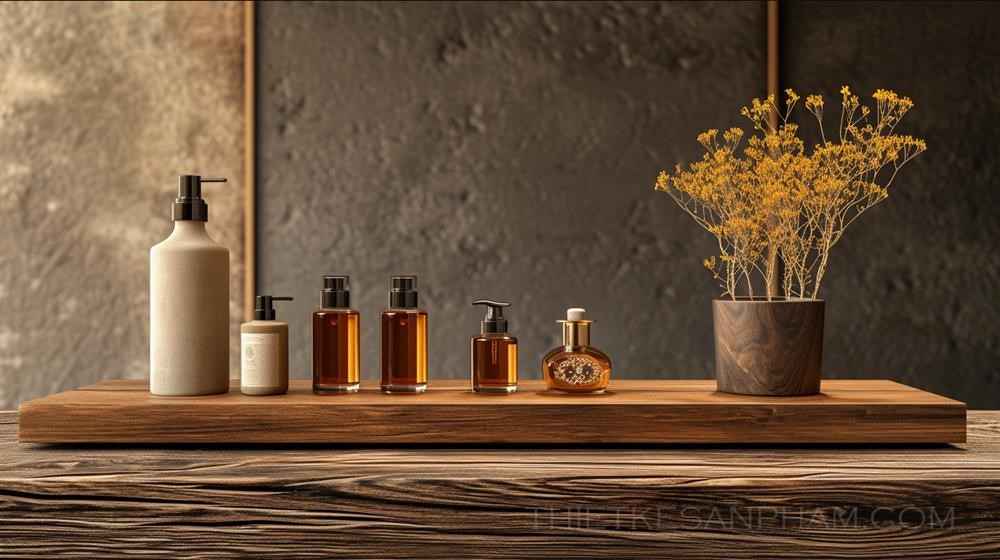 Hiển thị vẻ đẹp nông thôn: Trưng bày một bục từ gỗ theo phong cách nông thôn làm nền cho sản phẩm nước hoa, trang sức và mỹ phẩm. Vẻ đẹp phía trước mang đến sự tinh tế cho một chút cảm giác cổ điển.