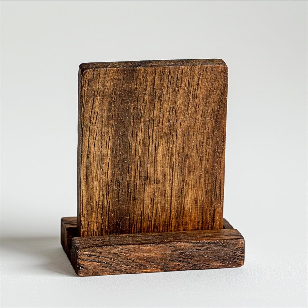 PROMPT: A cuboid card stand, wood texture --v 6.0 Ý Nghĩa: Một cái giá đựng thẻ hình hộp gỗ với chất liệu vân gỗ.