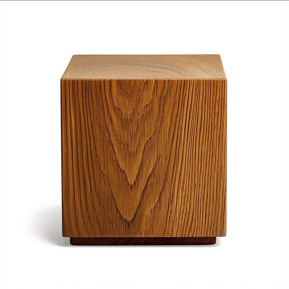 square wooden plinth with mid-century finn Juhl wood texture and warm colour in white space transparent background --v 6.0