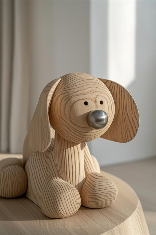 Tạo ra một con chó đồ chơi gỗ theo xu hướng năm 2024, gợi nhớ về một chiếc giường ngủ với hình dạng đặc biệt. Tập trung vào cấu trúc và kết cấu độc đáo, nhấn mạnh lên sự mềm mại của nó. Chất liệu sử dụng là gỗ nên phải có vẻ bề mặt mờ, mũi của chó được làm bằng kim loại. Nền nên đơn giản để làm nổi bật hình dạng và thiết kế độc đáo của con chó đồ chơi. Đồ chơi phải trông mới và thời thượng. Ảnh nên được chụp với sự tinh tế tự nhiên, mang đến một không khí trang nhã.