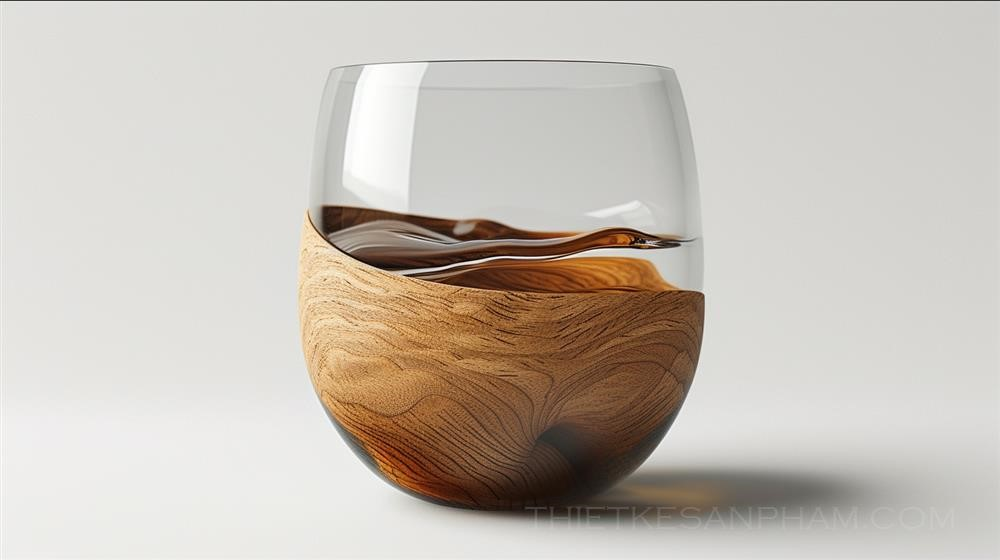 PROMPT: cup is part glass and part oak --ar 16:9 --style raw --v 6.0 --s 250 Ý Nghĩa: Cốc là một phần thủy tinh và một phần gỗ sồi.