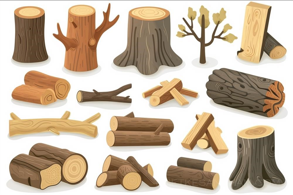 Firewood, set , vector, svg, flat, minimalistic animation asset, white background, isolated, big smooth shapes, adobe illustrator, inkscape --chaos 8 --ar 3:2 --v 6.0